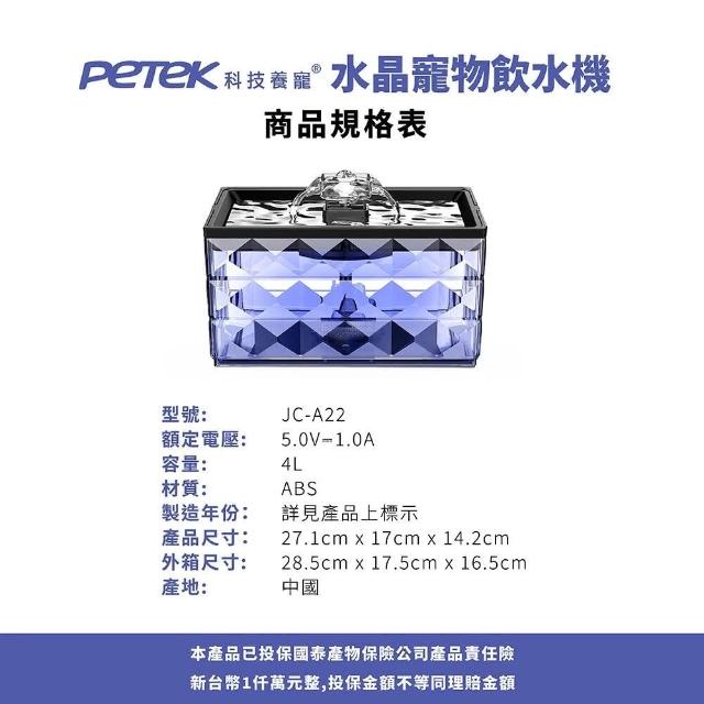 Petek水晶寵物飲水機JCA22(大容量4L 大小犬貓多寵家庭通用)