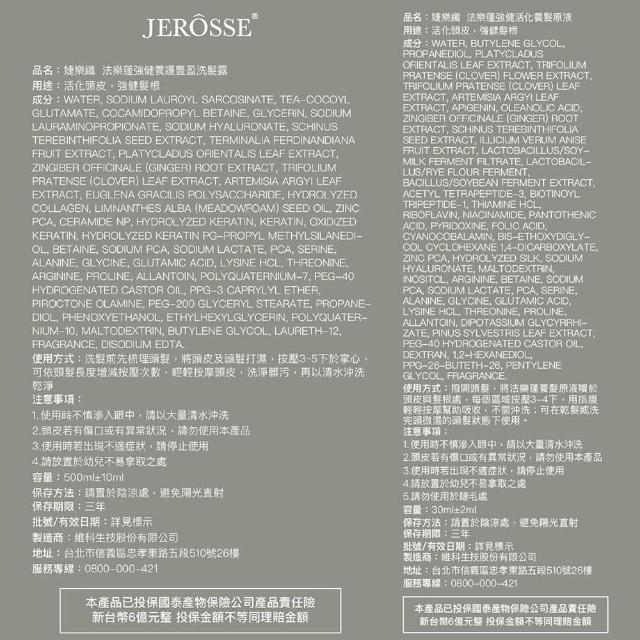 JEROSSE 婕樂纖法樂蓬養護組+洗髮露體驗包3包 ( 洗髮露1瓶 500ml+養髮原液1瓶 30ml 沙龍洗護 胜肽養髮)