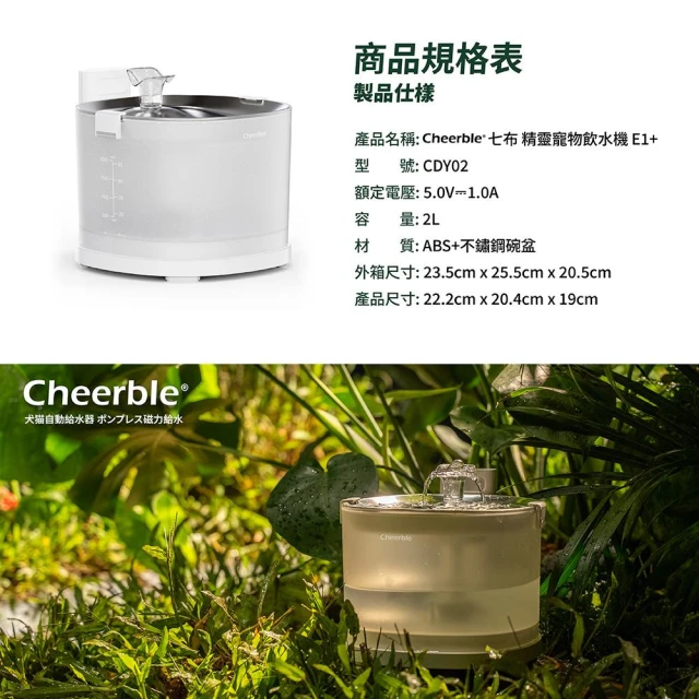 Cheerble七布 無泵無線寵物飲水機 E1+ 磁力供水 募資破萬台