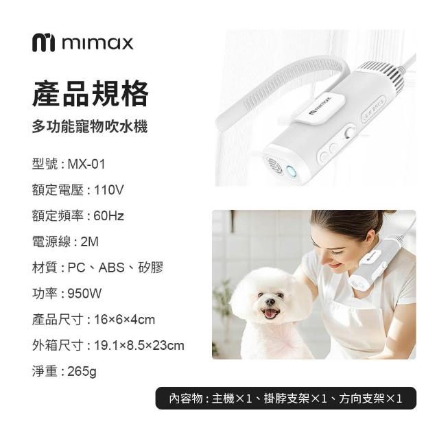 mimax 米覓掛脖吹水機 寵物吹水機 僅265g 寵物吹風機 3億負離子 寵物烘乾 手持 支架 掛脖 多用