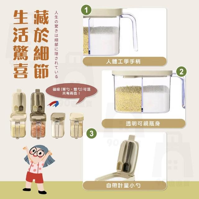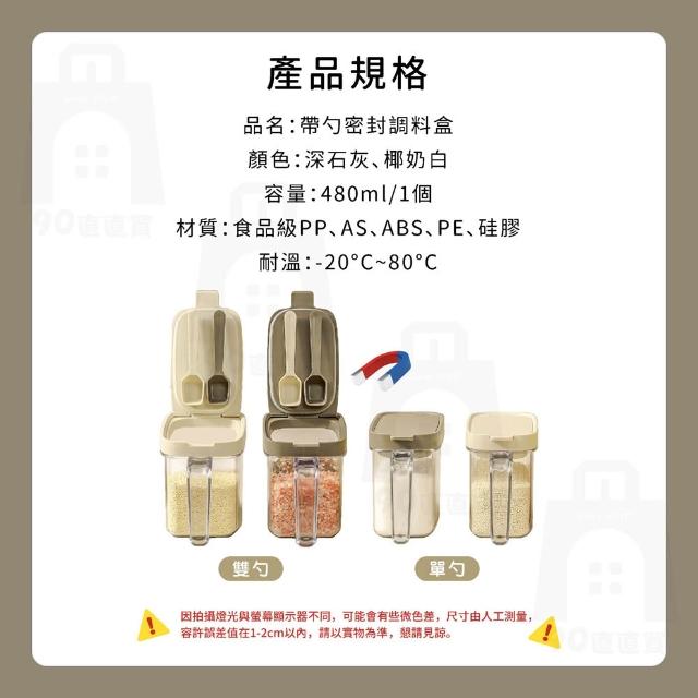 含磁勺 調味料罐 分裝盒 調味罐 瀝水保鮮盒 鹽巴罐 密封罐 真空罐 收納罐 蔥花保鮮盒 冰箱收納盒(一鍵開蓋_密封不怕漏自《帶磁吸勺 》)