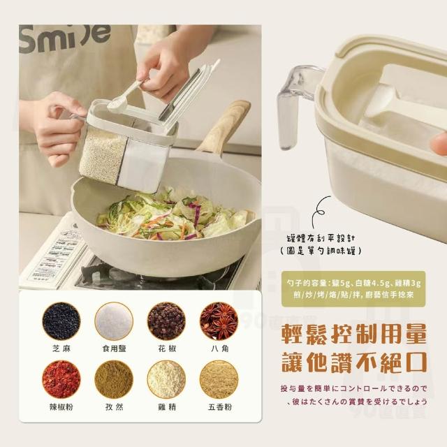 含磁勺 調味料罐 分裝盒 調味罐 瀝水保鮮盒 鹽巴罐 密封罐 真空罐 收納罐 蔥花保鮮盒 冰箱收納盒(一鍵開蓋_密封不怕漏自《帶磁吸勺 》)