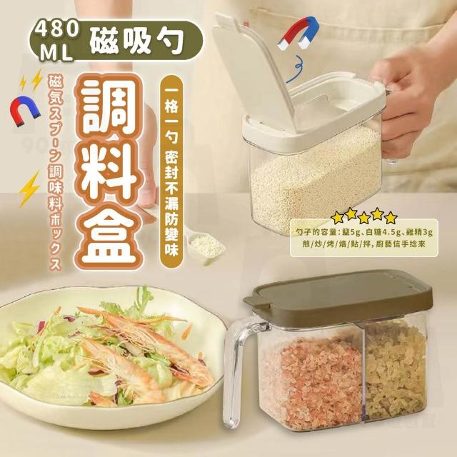 含磁勺 調味料罐 分裝盒 調味罐 瀝水保鮮盒 鹽巴罐 密封罐 真空罐 收納罐 蔥花保鮮盒 冰箱收納盒(一鍵開蓋_密封不怕漏自《帶磁吸勺 》)