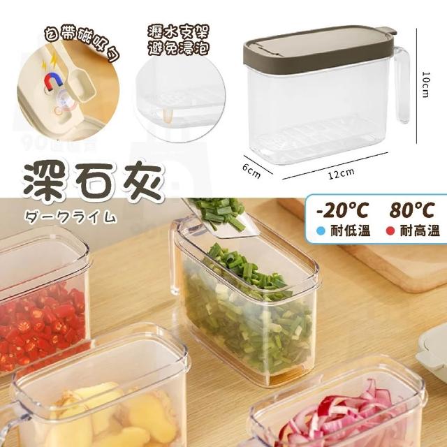 含磁勺 調味料罐 分裝盒 調味罐 瀝水保鮮盒 鹽巴罐 密封罐 真空罐 收納罐 蔥花保鮮盒 冰箱收納盒(一鍵開蓋_密封不怕漏自《帶磁吸勺 》)