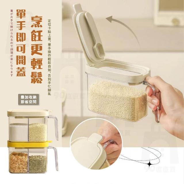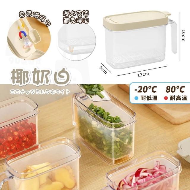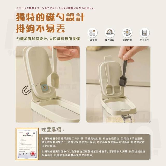 含磁勺 調味料罐 分裝盒 調味罐 瀝水保鮮盒 鹽巴罐 密封罐 真空罐 收納罐 蔥花保鮮盒 冰箱收納盒(一鍵開蓋_密封不怕漏自《帶磁吸勺 》)