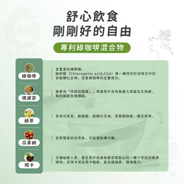 艾禾生醫仙仙比 美國專利檸檬 瓜拿納 綠咖啡 瑪黛茶 代謝 代謝膠囊 飽足感 促進代謝 調節生理機能