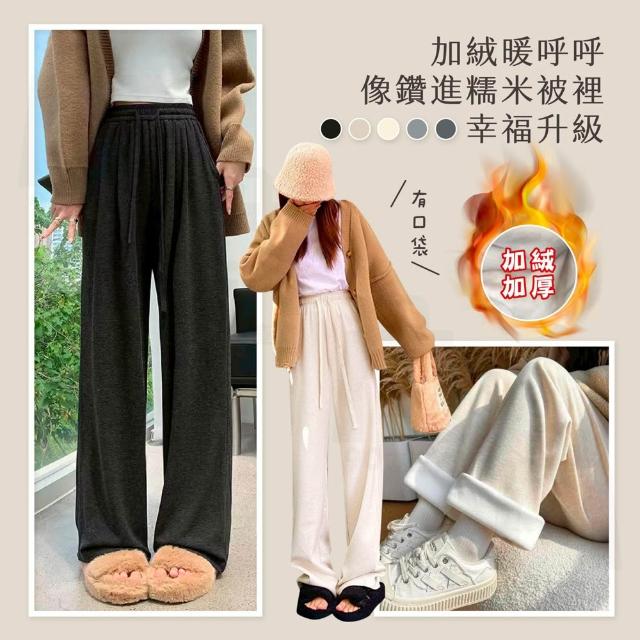 糯米褲 刷毛寬褲 冬天寬褲 秋冬寬褲 磨毛長褲 垂墜感長褲 女生寬褲 棉寬褲 直筒寬褲 闊腿褲 保暖褲