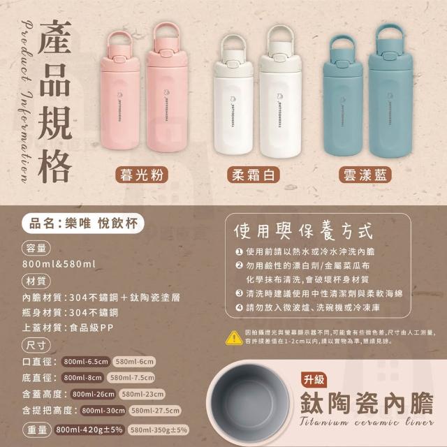 樂唯 THERMOGUARD悅飲杯 鈦陶瓷保溫杯 陶瓷保溫杯 580ml 800ml 陶瓷吸管杯 保溫杯 陶瓷隨行杯