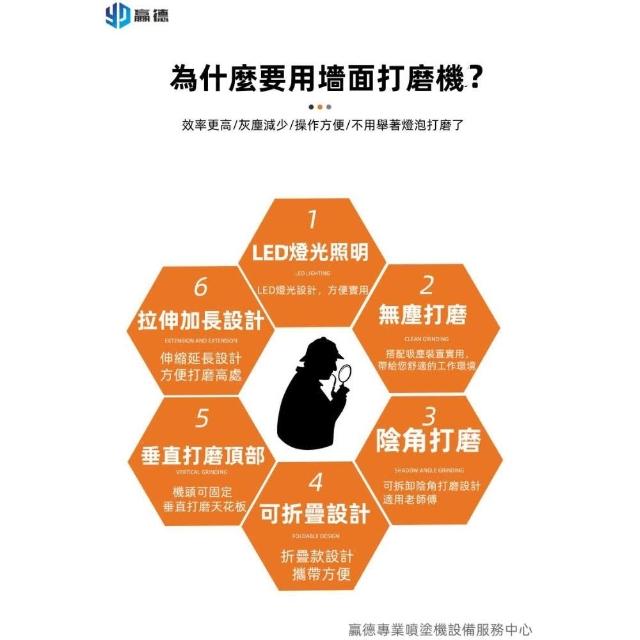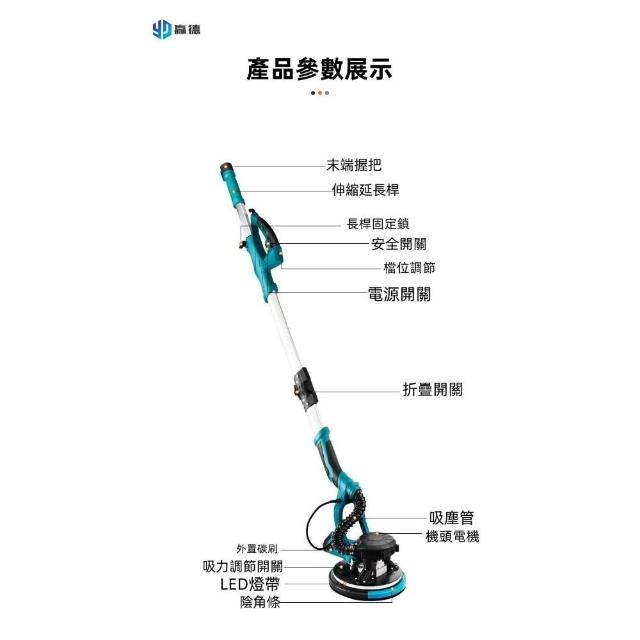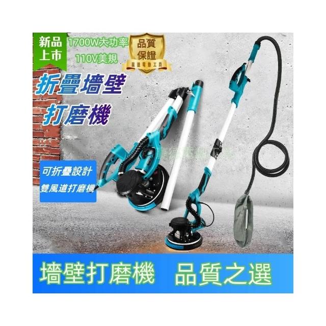 大手柄折疊款打磨機(附100張打磨砂紙)自吸無塵墻麵膩子磨墻帶燈長桿砂紙機110V美規