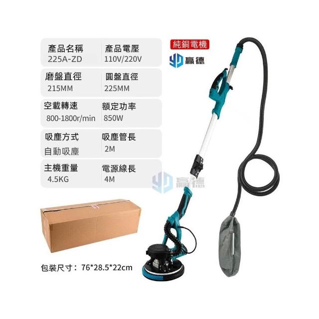 大手柄折疊款打磨機(附100張打磨砂紙)自吸無塵墻麵膩子磨墻帶燈長桿砂紙機110V美規