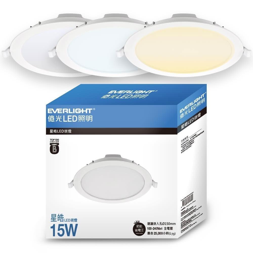 Everlight 億光15W LED星皓崁燈 崁孔15CM嵌燈 坎燈 一年保固(白光/黃光/自然光)