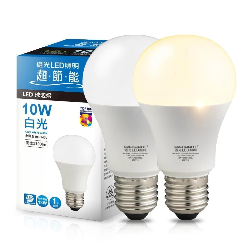 Everlight 億光10W高光效LED燈泡(白光/黃光)