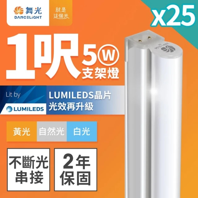 DanceLight 舞光25入組 1呎LED支架燈 T5 5W 一體化層板燈 不斷光間接照明(白光/自然光/黃光)