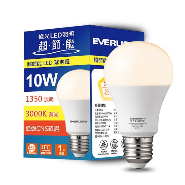 Everlight 億光10入組 10W 超節能高效環保LED燈泡 (黃光/自然光/白光)