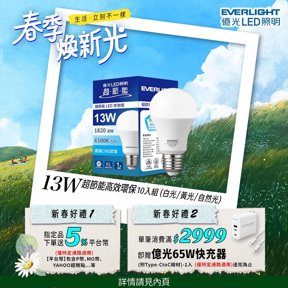 Everlight 億光10入組 13W 超節能高效環保LED燈泡 (黃光/自然光/白光)