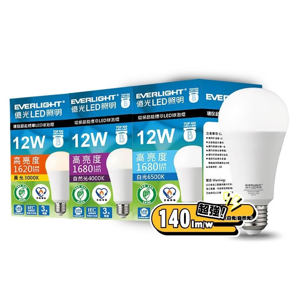 Everlight 億光12W 環保節能標章LED燈泡 (黃光/自然光/白光)