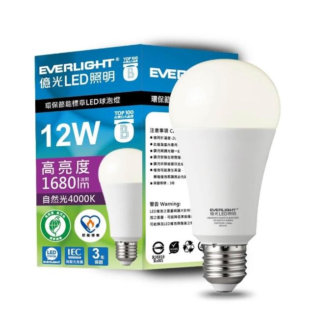 Everlight 億光20入組 12W 環保節能標章LED燈泡 (黃光/自然光/白光)