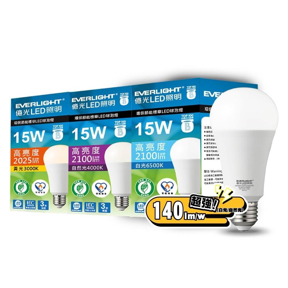 Everlight 億光15W 環保節能標章LED燈泡 (黃光/自然光/白光)