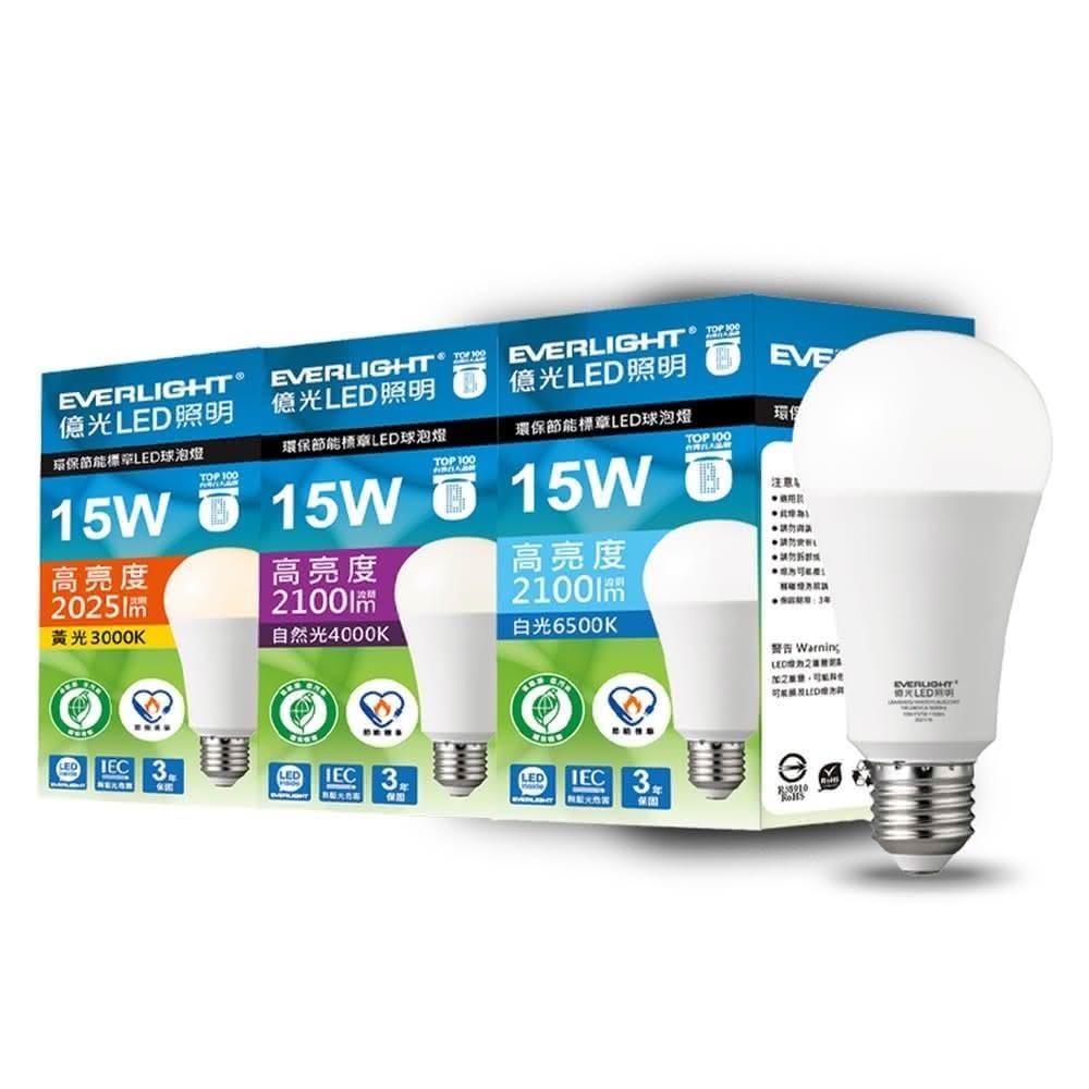 Everlight 億光20入組 15W 環保節能標章LED燈泡 (黃光/自然光/白光)