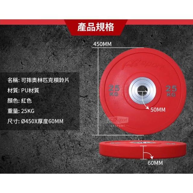 專業可摔奧林匹克槓片25KG(25公斤/大孔片/槓鈴片/啞鈴片/Olympic/硬舉/深蹲/胸推)