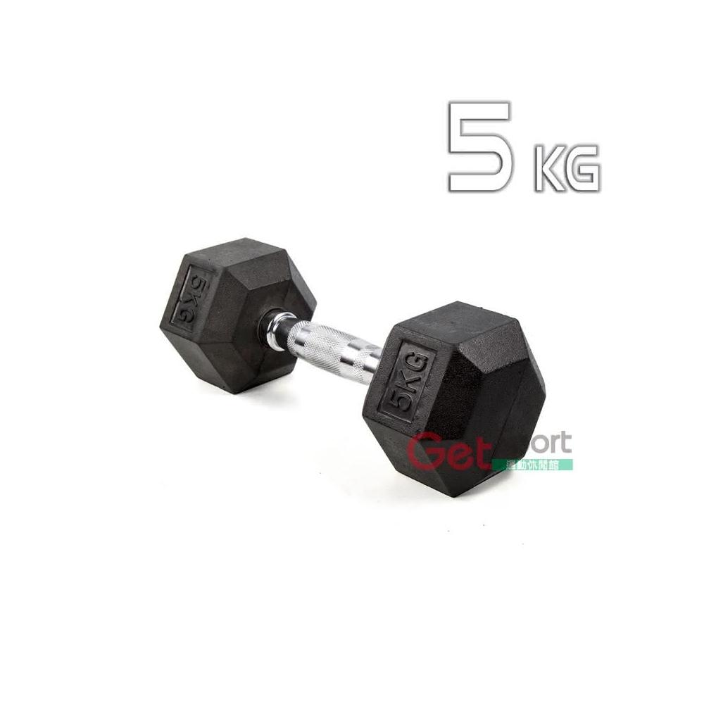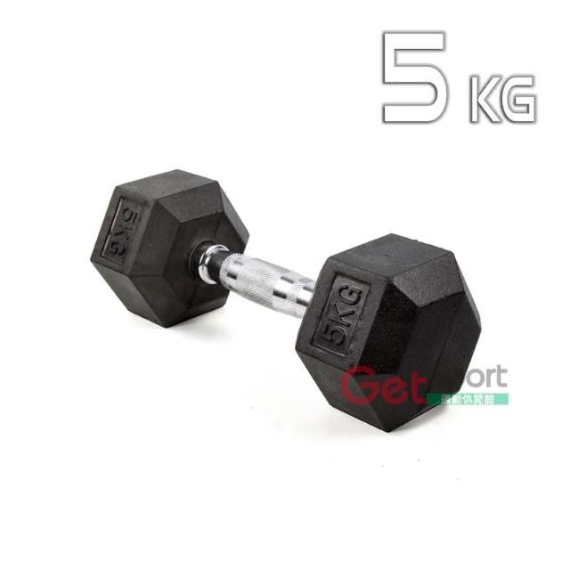 六角包膠啞鈴5公斤(5kg/重訓/二頭肌/鐵啞鈴/健身器材/肌肉訓練)