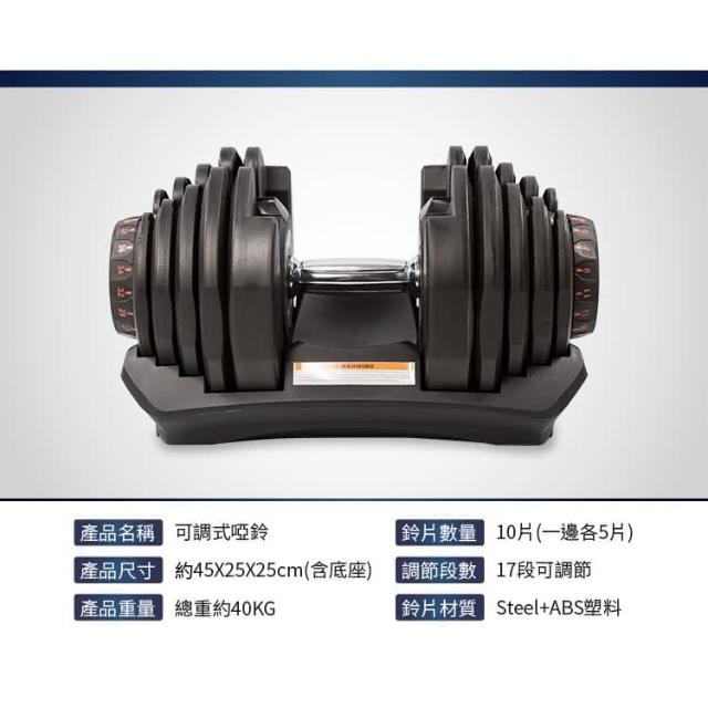 快速調整型啞鈴40公斤(40kg/88磅可調式啞鈴/17段重量/重訓/舉重/速調啞鈴/槓片/槓鈴/Dumbbell)