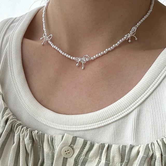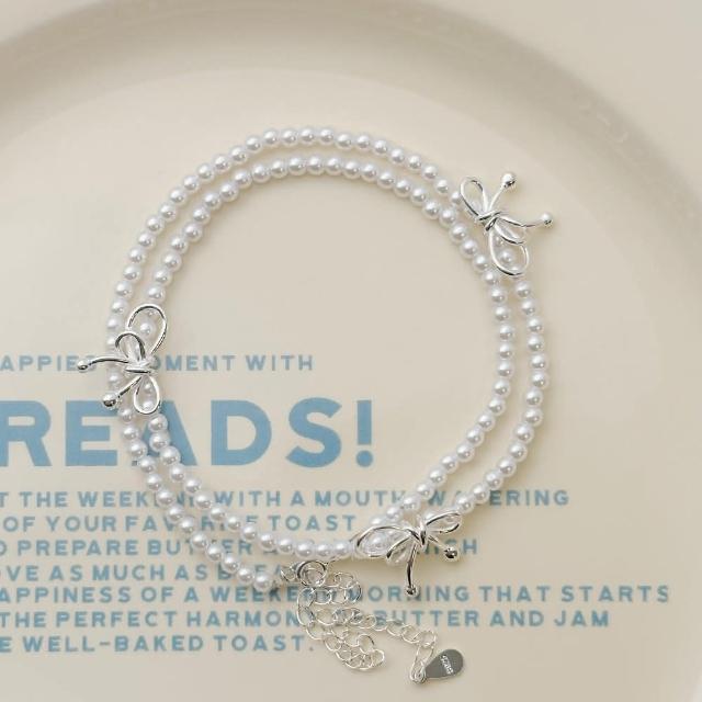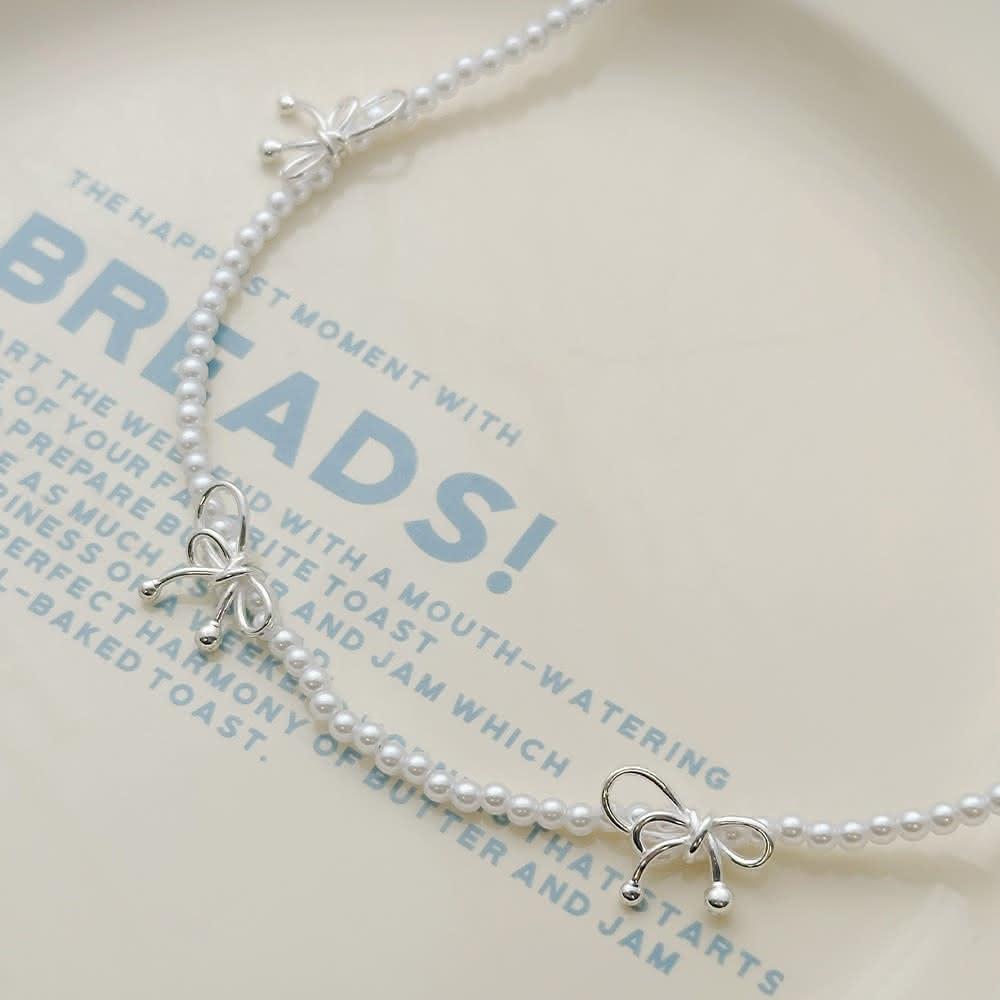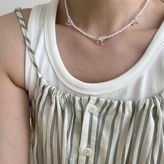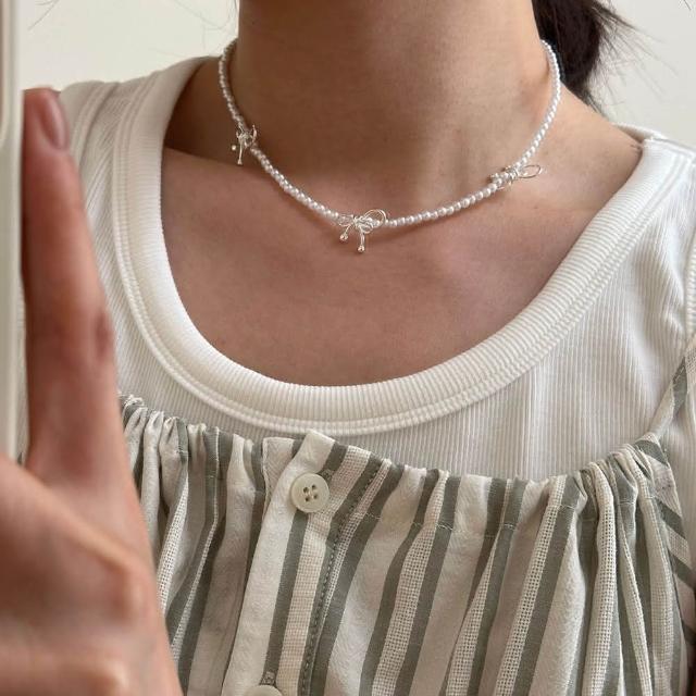 Rencontre 甜蜜仙女 蝴蝶結珍珠項鍊(韓國純銀項鍊 純銀項鍊)