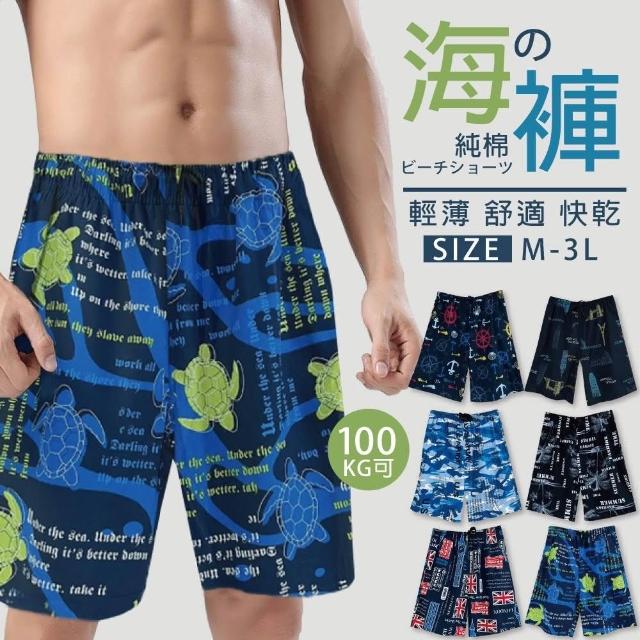 M-3L 100%純棉/花款/海灘褲(純棉短褲 海灘褲 短褲 衝浪褲 海灘褲 休閒短褲)