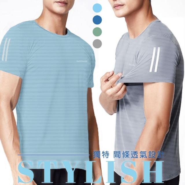 M-3L 男生 橫條/排汗/透氣男短上衣(運動男生圓領上衣 網眼布 透氣洞洞孔 男生上衣 運動上衣)