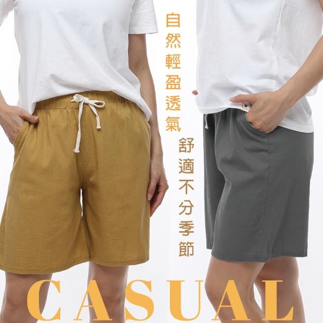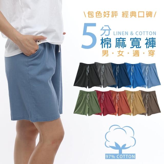 男女適穿 棉麻五分褲百慕達短褲(男女生五分褲 闊腿 顯瘦 短褲 休閒短褲 休閒褲)