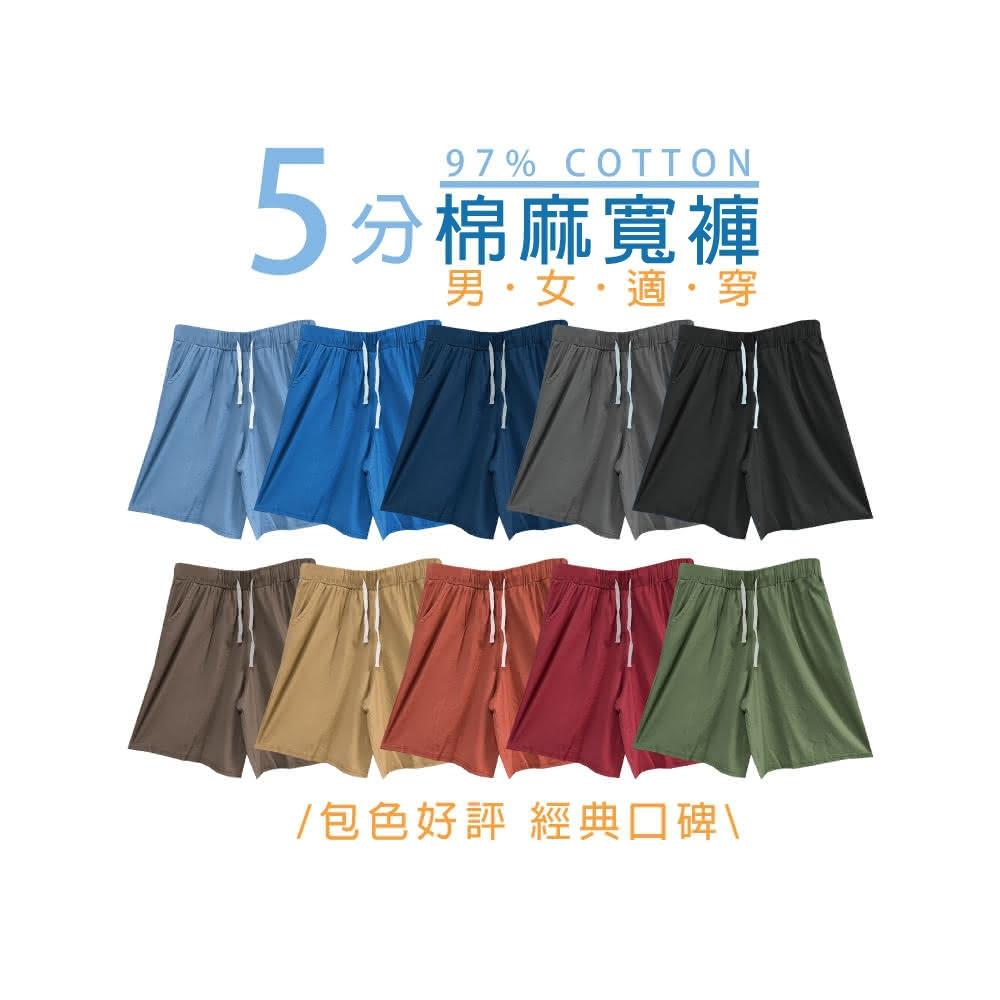 男女適穿 棉麻五分褲百慕達短褲(男女生五分褲 闊腿 顯瘦 短褲 休閒短褲 休閒褲)