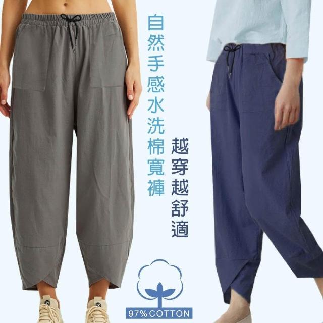 日系棉麻 高含棉透氣親膚寬腳褲(棉麻長褲 寬腳褲 休閒長褲 修飾長褲 透氣長褲 男女適穿寬褲)
