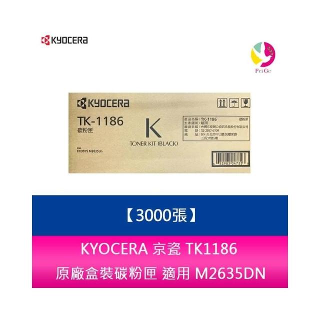 KYOCERA 京瓷KYOCERA 京瓷 TK1186 原廠盒裝碳粉匣(3000張) 適用 M2635DN