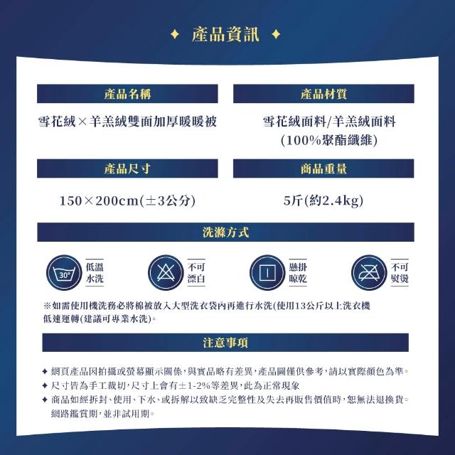 4M+雪花絨×羊羔絨 雙面加厚暖暖被 2.4KG棉被 冬被 雙人被 150x200cm