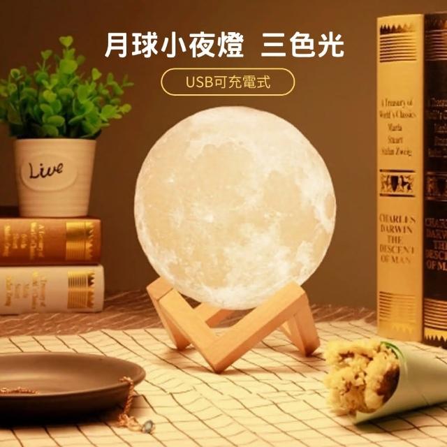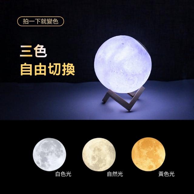 每日出貨🚚月球小夜燈 12cm 三色光 USB可充電式月亮拍拍燈 附150cm充電線 內建鋰電池 實用禮物