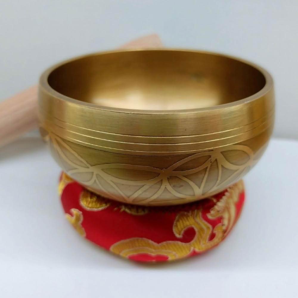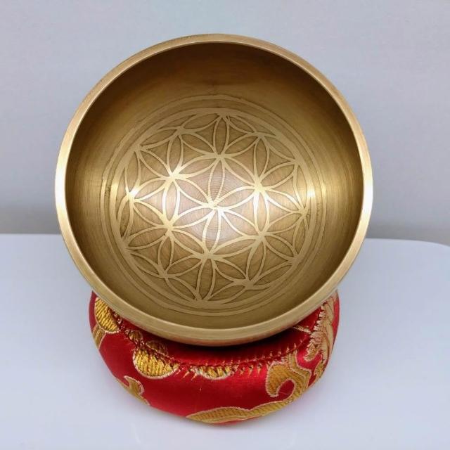 每日出貨🚚生命之花雕刻_手工小頌缽 能量極好!音療共振,並能幫助空間淨化,提升內在平靜 直徑8.5公分 附敲棒、頌缽墊