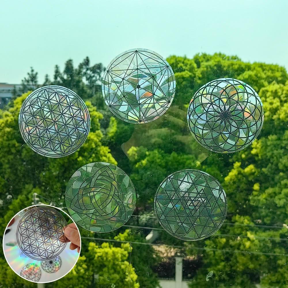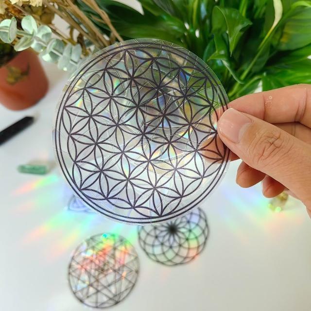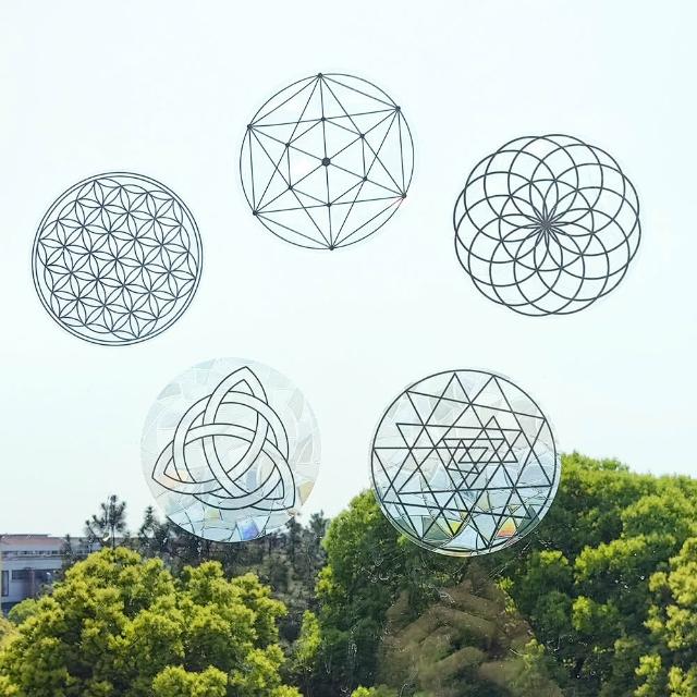 每日出貨🚚5種神祕符號炫彩靜電窗貼 12cm 生命之花 大天使麥達昶 凱爾特三角 玻璃裝飾 七彩折射 重複使用 適用窗戶 玻璃門