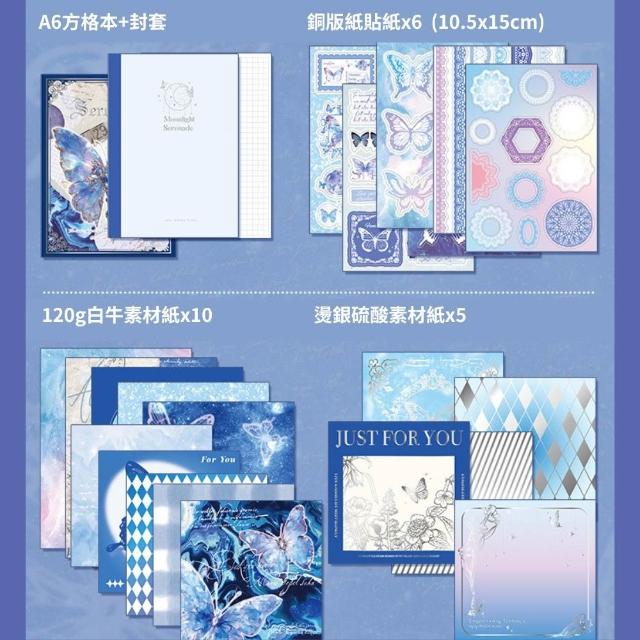 每日出貨🚚【手帳禮盒-藍色蝴蝶】拼貼、手帳佈置、貼紙、手帳套組、手帳素材、變籤、便條紙、A6筆記本