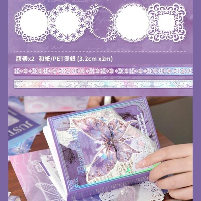 每日出貨🚚【手帳禮盒-紫色蝴蝶】拼貼、手帳佈置、貼紙、手帳套組、手帳素材、變籤、便條紙、A6筆記本
