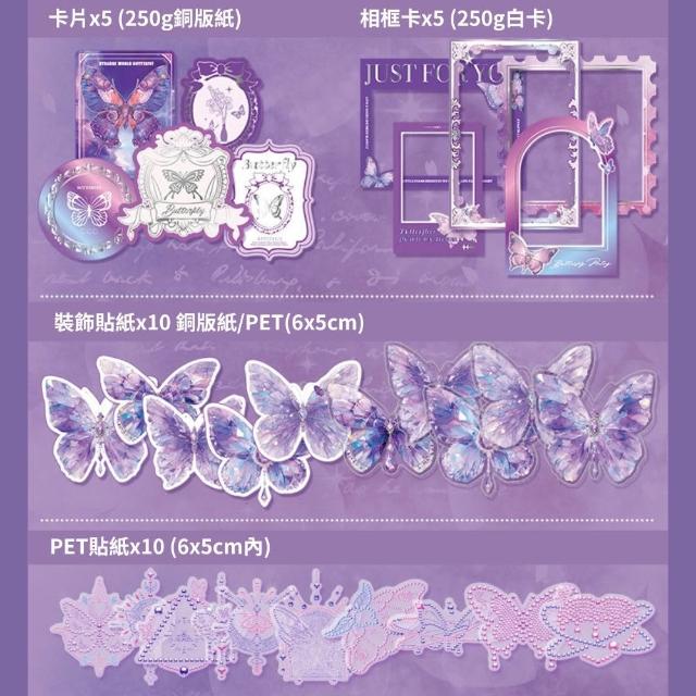 每日出貨🚚【手帳禮盒-紫色蝴蝶】拼貼、手帳佈置、貼紙、手帳套組、手帳素材、變籤、便條紙、A6筆記本