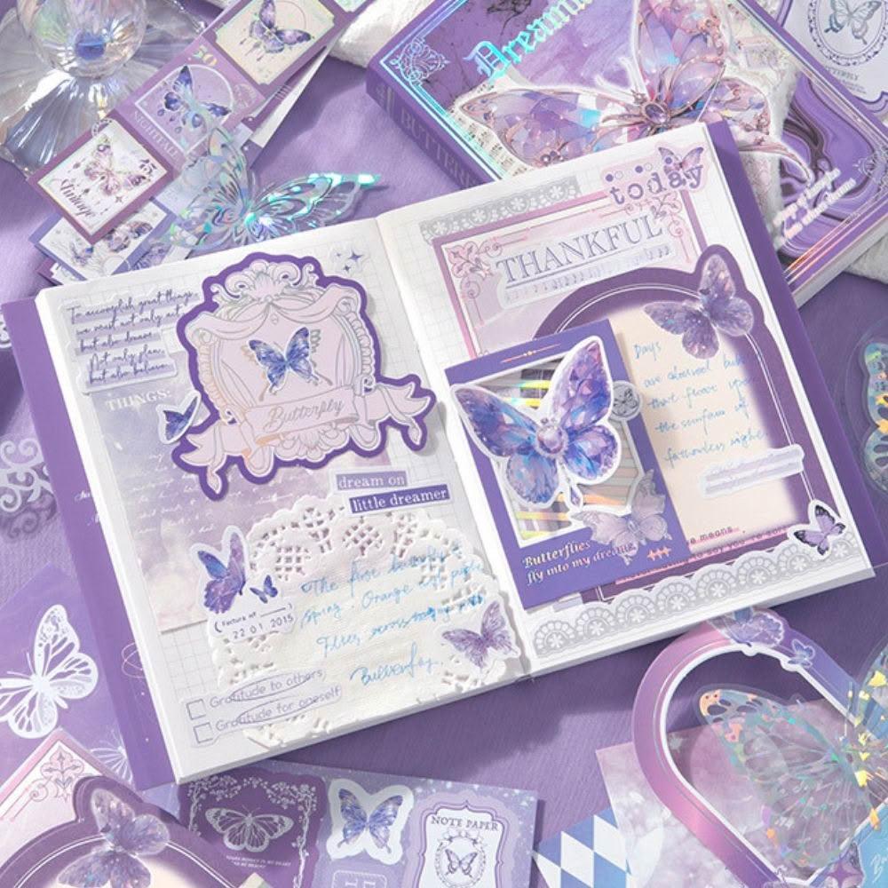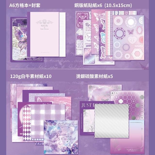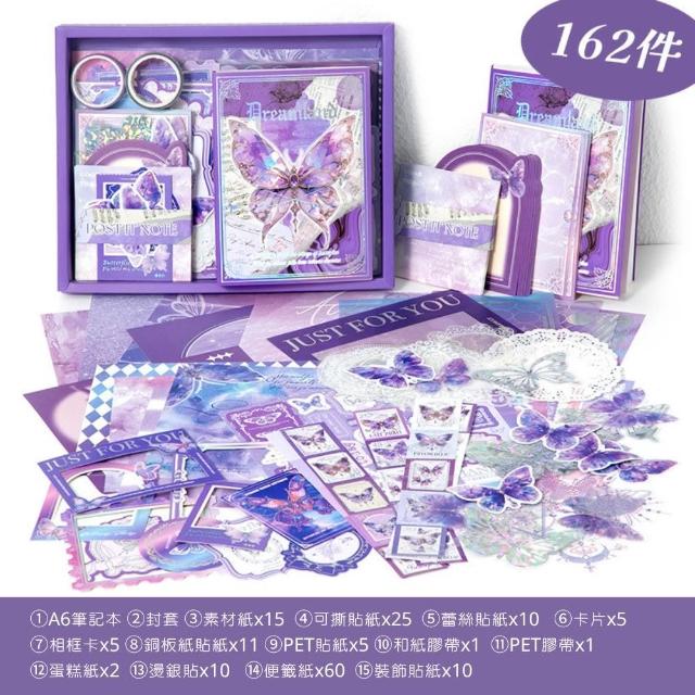 每日出貨🚚【手帳禮盒-紫色蝴蝶】拼貼、手帳佈置、貼紙、手帳套組、手帳素材、變籤、便條紙、A6筆記本