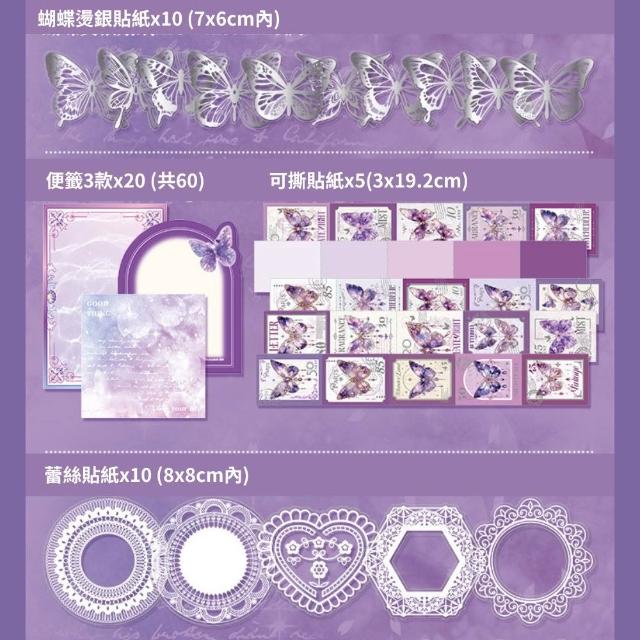 每日出貨🚚【手帳禮盒-紫色蝴蝶】拼貼、手帳佈置、貼紙、手帳套組、手帳素材、變籤、便條紙、A6筆記本
