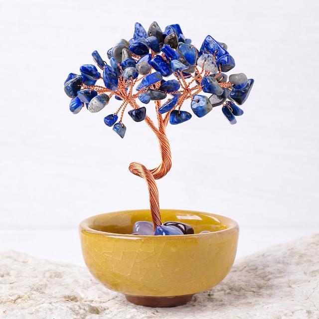 每日出貨🚚水晶樹盆栽-青金石 提升直覺 發財樹、生命樹、許願樹、聚寶盆 天然水晶+瑪瑙滾石 手工製作 提升運勢 辦公…
