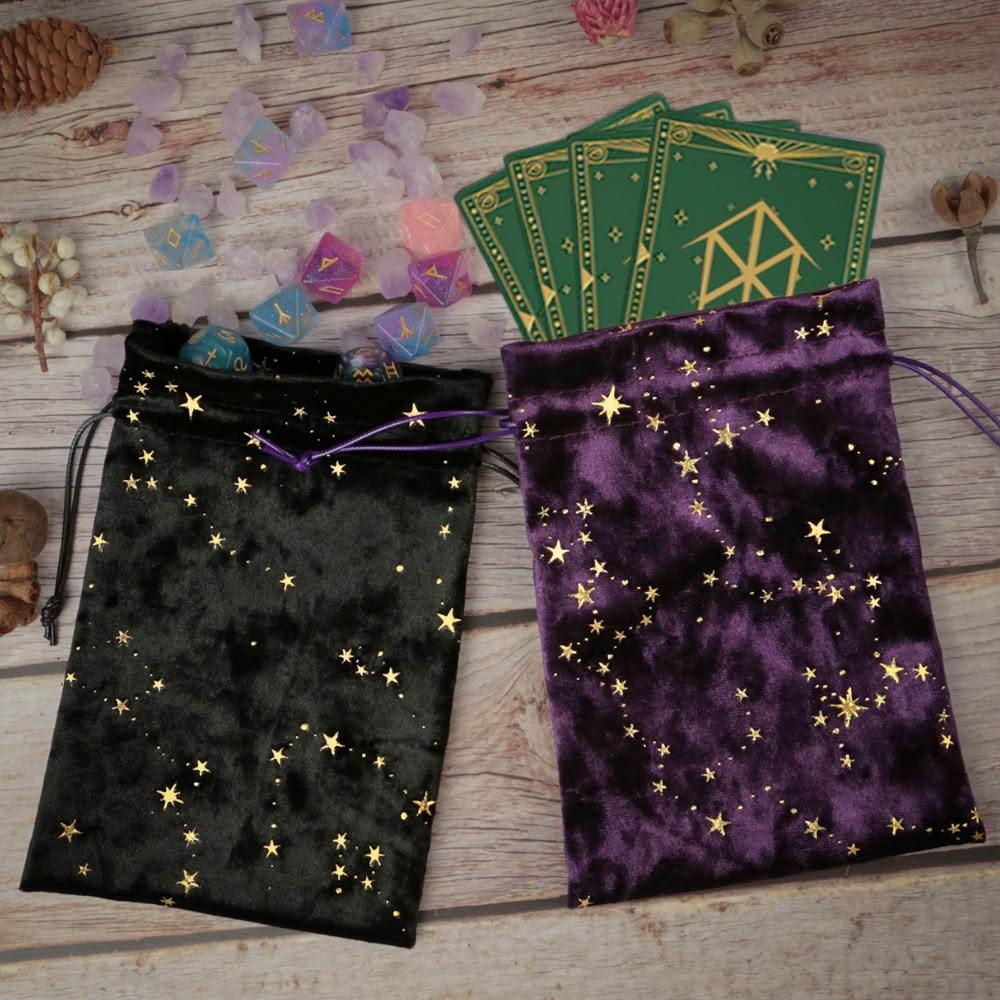 每日出貨🚚星光閃爍塔羅牌收納袋 2色可選 立體水晶膠燙金 珠光絨布 塔羅袋 絨布袋 束口袋 神諭卡收納袋