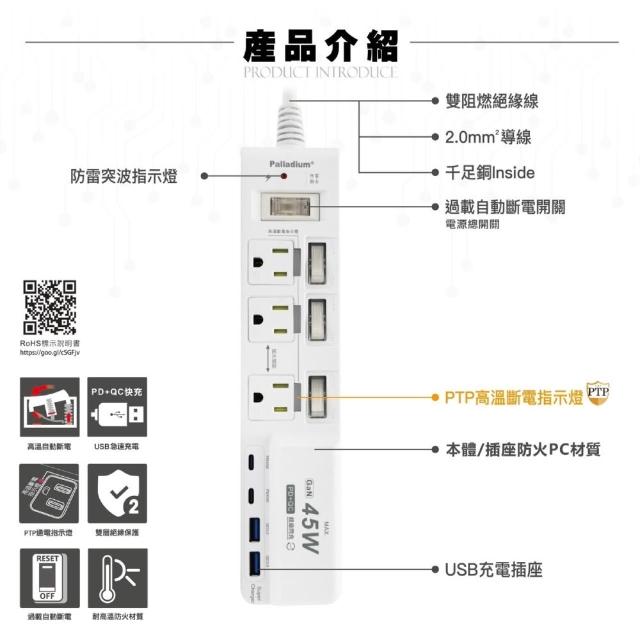 Palladium 氮化鎵 USB延長線 BSMI認證 保固一年 PD+QC快充 延長線 自動斷電 快充線