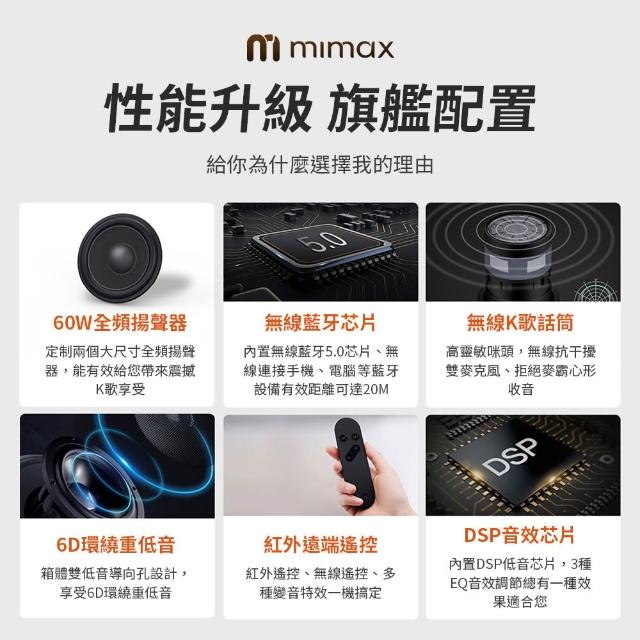 mimax 米覓家用KTV音箱 附麥克風遙控器 全頻揚聲器 6D環繞重低音 變音效果 5.0藍牙