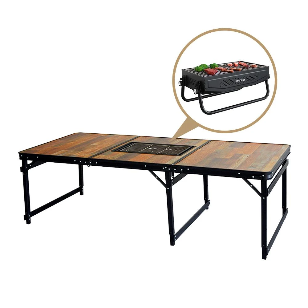 LIFECODE黑電木加寬鋁合金燒烤桌/折疊桌180*80cm送背袋+可提式烤肉架
