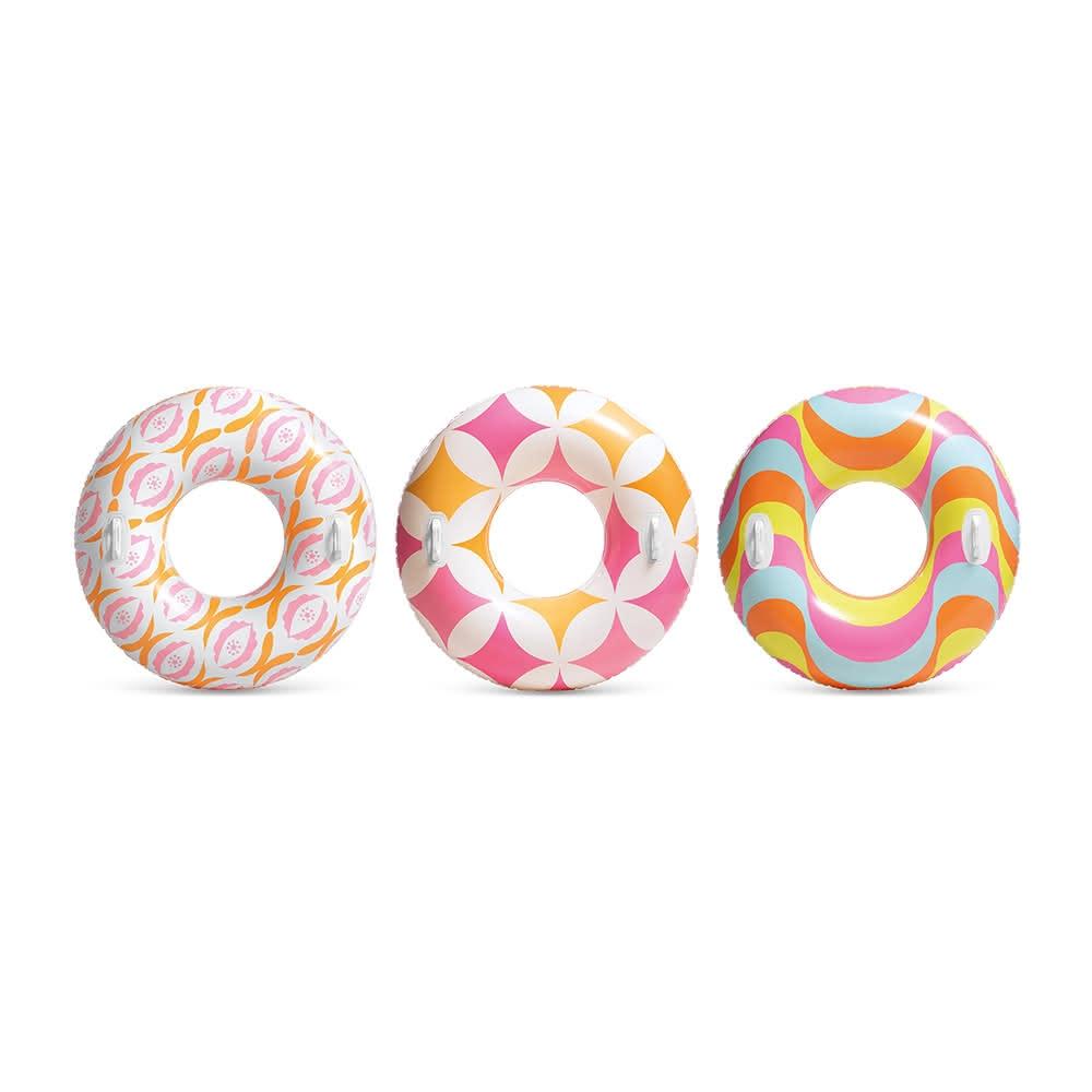INTEX永恆花紋帶扶手游泳圈直徑114cm 適9歲+ 3款可選56269