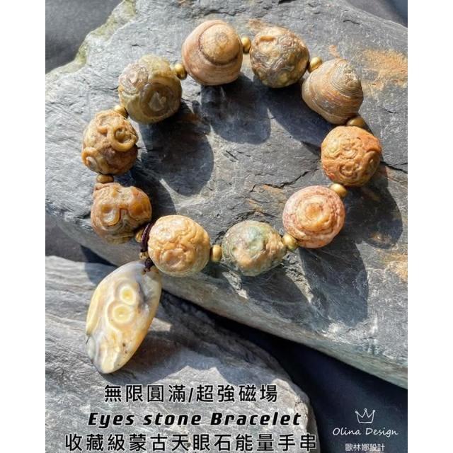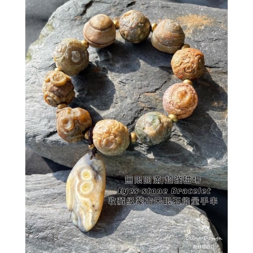 收藏級 大顆粒 蒙古 文石 天眼石 眼睛石 九眼石頁岩 超強磁場 手串 每顆約2.5公分珠徑 收藏品 原石 原礦