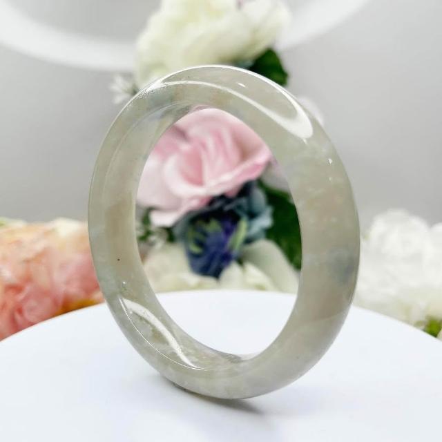 No.61 稀有唯美浪漫藍冰佘太翠 58 mm 圈口 佘太玉 手環 手鐲 藍冰礦料帶微皮摳